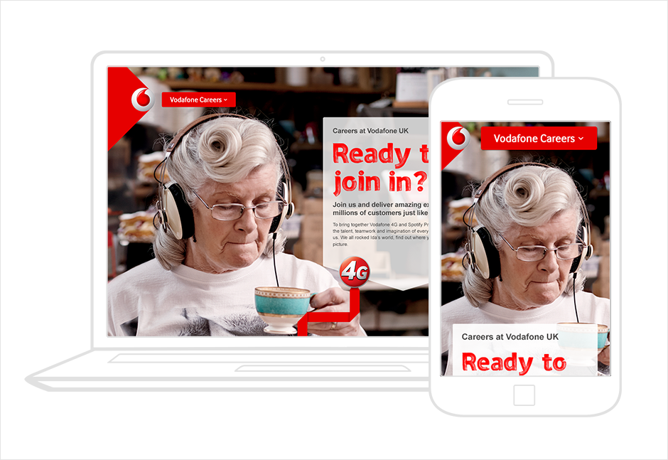 A responsive website design for Vodafone's Career website launched in 2014, using subtle parallax scrolling to help guide and engage the user whilst scrolling down the page. The aim was to target newly graduated students and encourage them to consider a role at Vodafone.